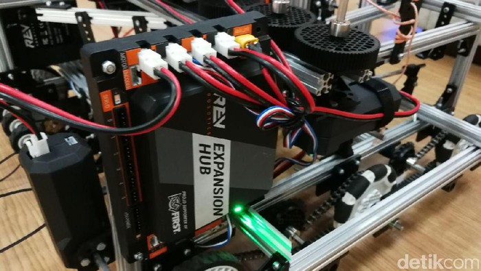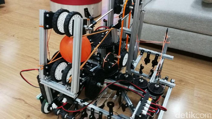 Kedua, Ball Collector, mengumpulkan semua bola warna biru dan orange masuk ke dalam robot. Ketiga Ball Lifter untuk mengangkat bola ke atas. Foto: detikINET/Muhammad Alif Goenawan