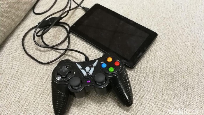 Untuk menggerakan robot WowWi ini bisa dikendalikan ala pengontrol yang serupa konsol. Alat ini dioperasikan tim untuk menjalankan tugas kepada robot. Foto: detikINET/Muhammad Alif GoenawanΒ
