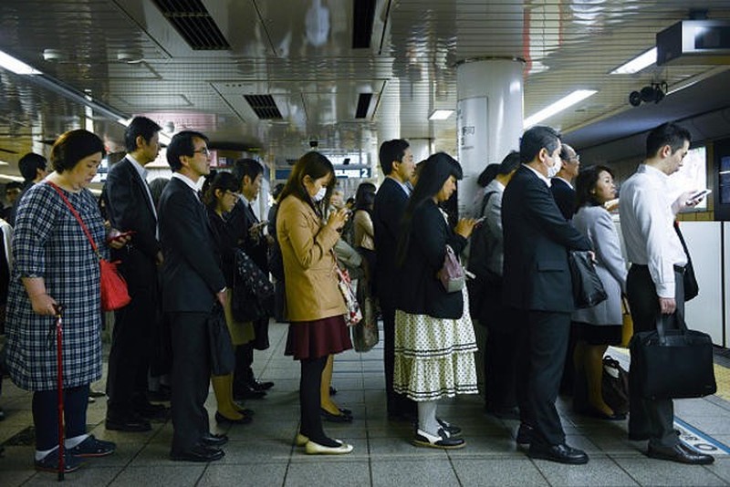 Calon penumpang menunggu dengan tertib di stasiun MRT di Tokyo, Jepang. Foto: Getty Images