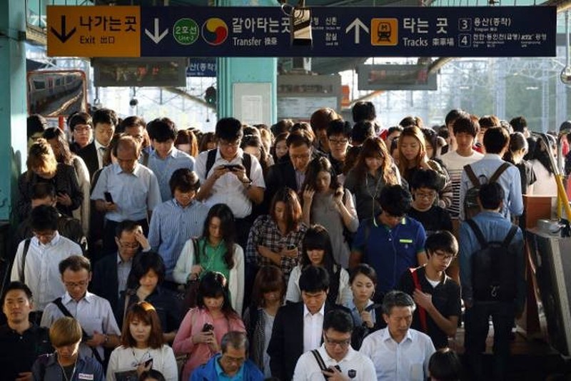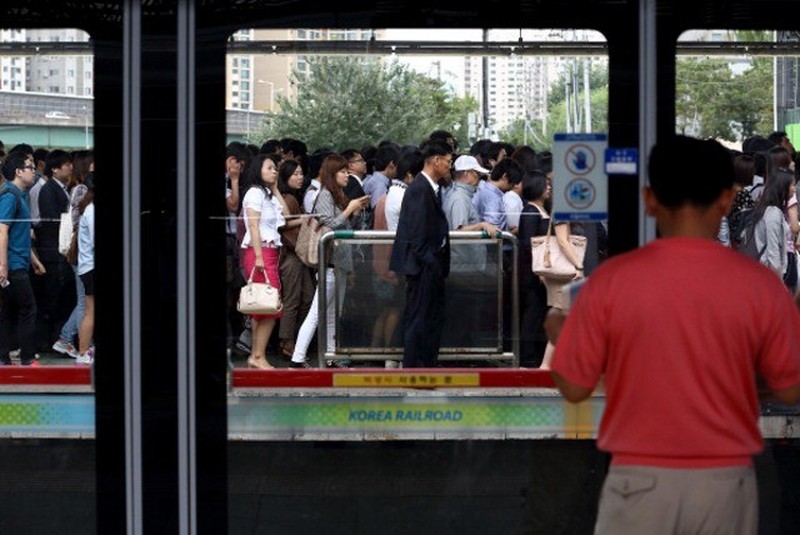 Keramaian orang menuju MRT di Incheon. Foto: Getty Images