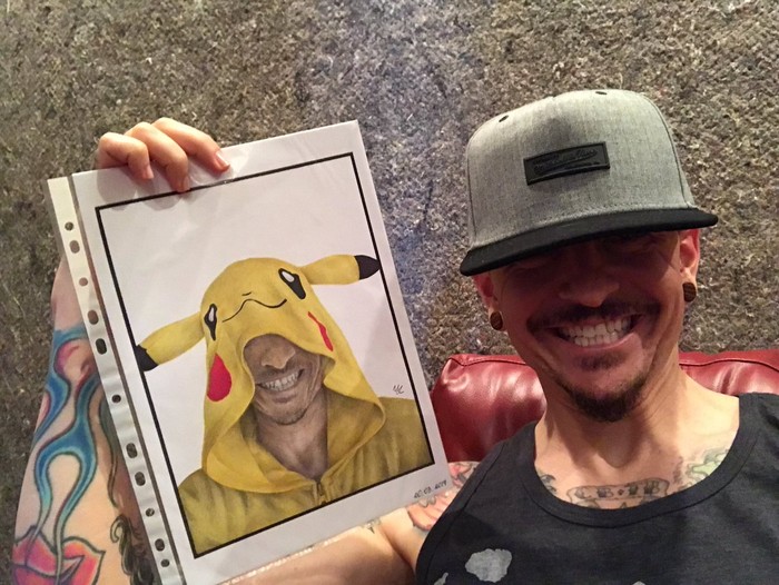 Ternyata Chester penggemar pokemon. Foto: Chester Bennington