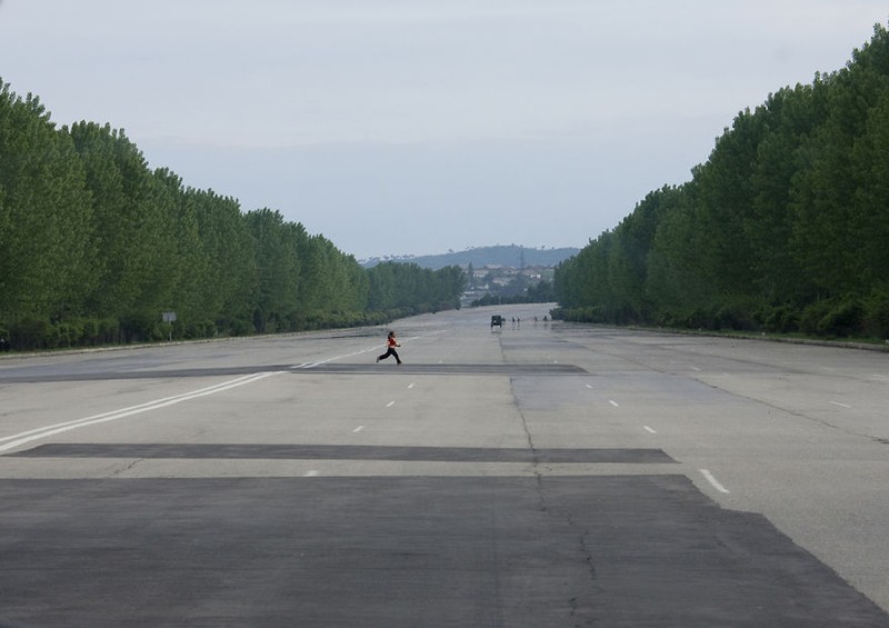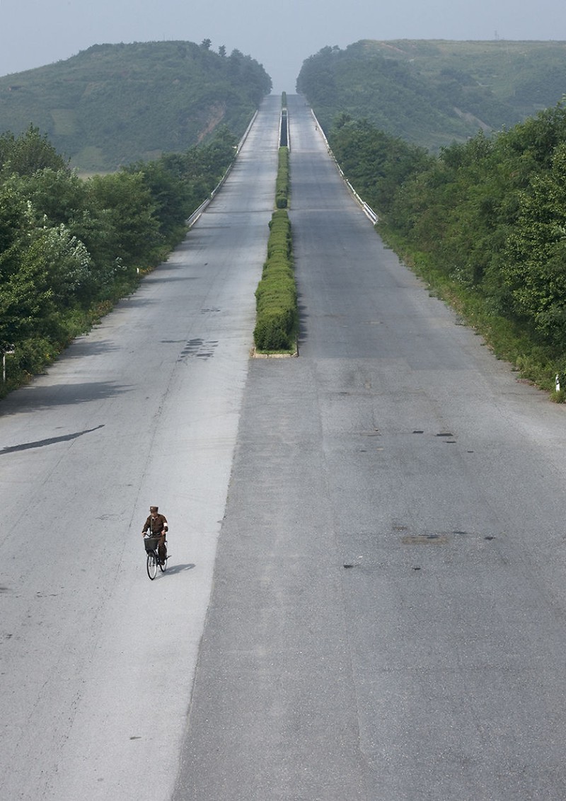 Eric Lafforgue, itulah nama sang fotografer. Ia mengunjungi Korea Utara mengikuti tur yang sudah ditentukan. Jalanan di sana ternyata sangat mulus dan sangat lebar, tapi sedikit sekali kendaraan melintas. Foto: Bored Panda
