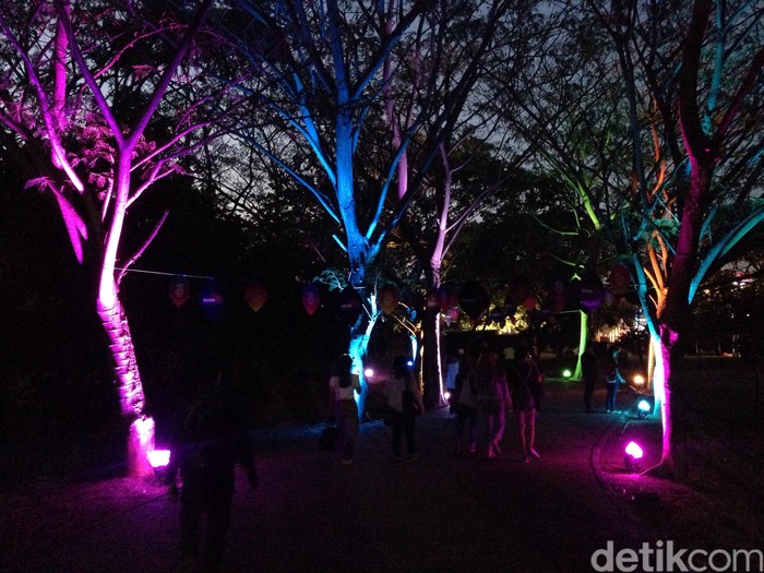 Saat melangkah ke venue konser, orang-orang akan melewati instalasi neon warna-warni. Foto: detikINET/Agus Tri Haryanto