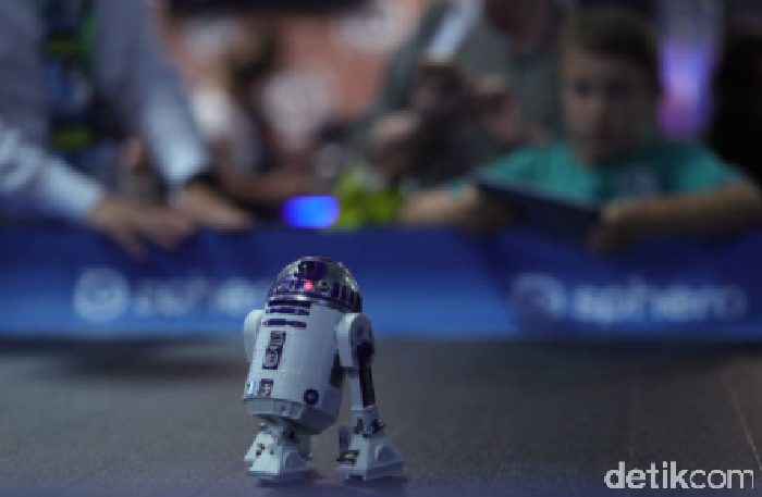 Terlihat aksi droid R2D2 mini yang memukau para pengunjung. Foto: Getty Images