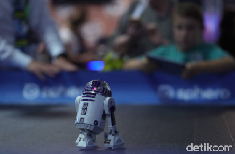 Terlihat aksi droid R2D2 mini yang memukau para pengunjung. Foto: Getty Images