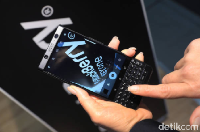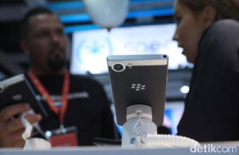 BlackBerry pun ikut ambil bagian di ajang ini. Terlihat seorang pengunjung sedang menjajal kamera BlackBerry KeyOne. Foto: Getty Images
