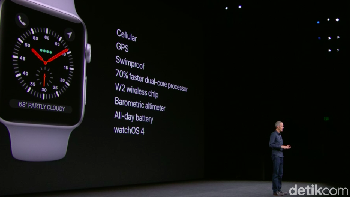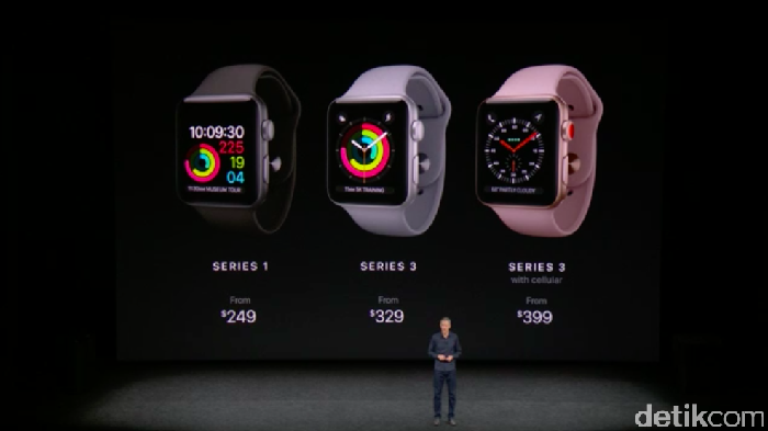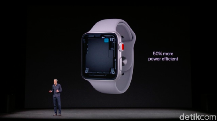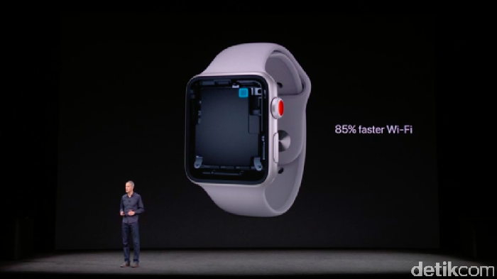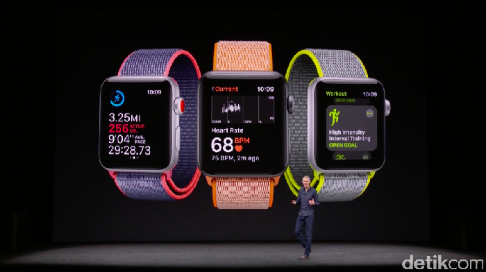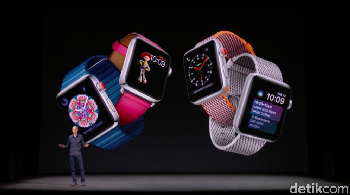 Produk pertama yang diperkenalkan pada hajatan besar Apple kali ini adalah Apple Watch, tepatnya Apple Watch Series 3.