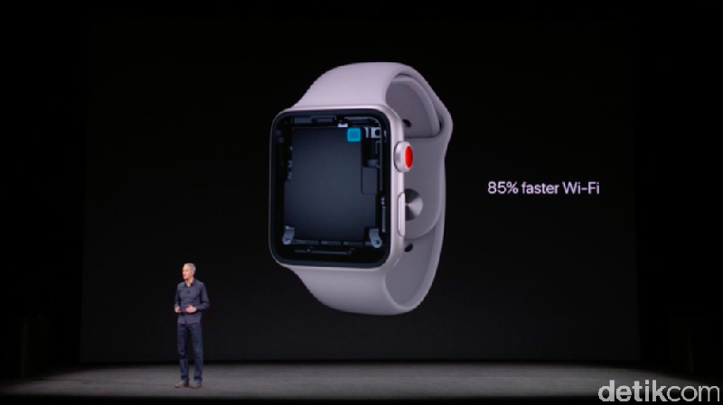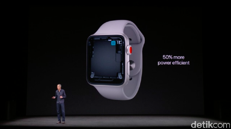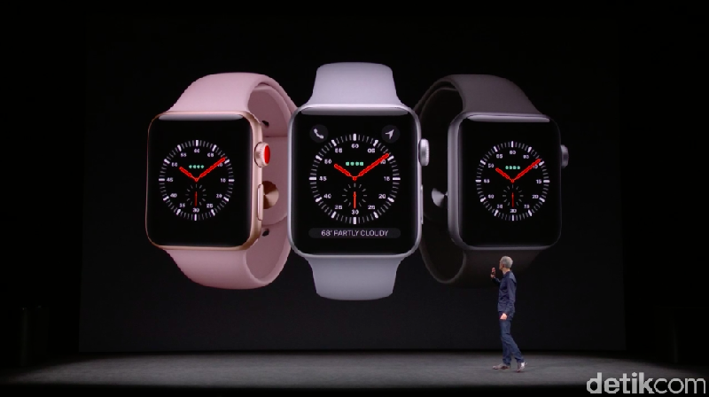 Produk pertama yang diperkenalkan pada hajatan besar Apple kali ini adalah Apple Watch, tepatnya Apple Watch Series 3.