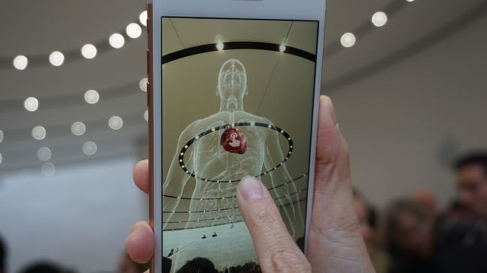 Tampilan fitur Augmented Reality (AR) di iPhone 8 Plus yang diklaim menjadi smarphone pertama menggunakan fitur ini. Fitur tersebut juga disematkan di iPhone 8 dan iPhone X yang rilis bersamaan.Β (Foto: Dok. techradar)