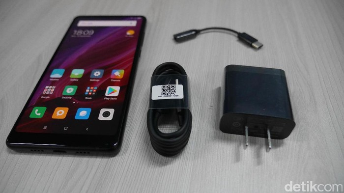 Saat kertas dibuka, langsung terlihat Mi Mix 2 dan sejumlah aksesorisnya. Foto: detikINET/Anggoro Suryo Jati