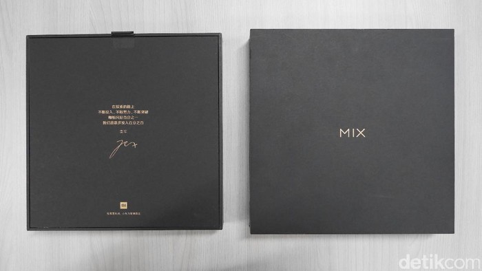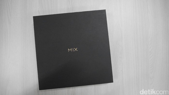 Boks Mi Mix 2 berwarna hitam dengan tulisan Mix berwarna emas pada bagian depannya. Foto: detikINET/Anggoro Suryo Jati