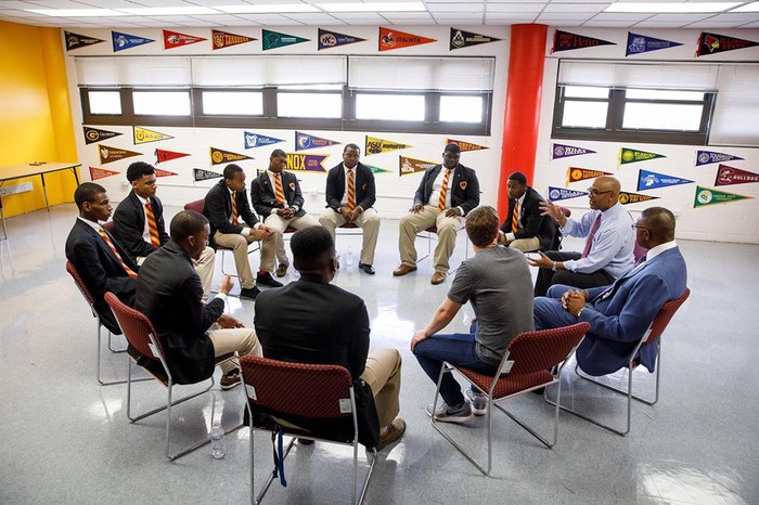 Saat berada di sebuah sekolah di Chicago di mana ia mengunjungi para siswa dan guru, lagi-lagi dengan pakaian santai yang kontras dengan sekeliling. Foto: Istimewa