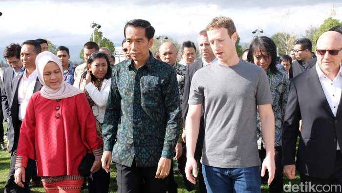 Tak ada jaminan saat bertemu pejabat penting dia berpakaian resmi. Biasanya kalau ada pejabat negara lain mengunjung markas Facebook, Zuck tetap bergaya santai. Ini seperti saat menyambut Perdana Menteri Singapura Lee Hsien Loong. Foto: Istimewa