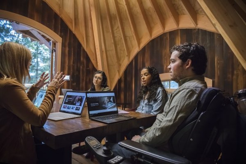 Dengan tinggi sekitar 3 meter, rumah pohon itu cukup luas, lengkap dengan Wi Fi dan colokan listrik. Bahkan juga disediakan makanan kecil di kafetaria. (Foto: Dok. Microsoft)