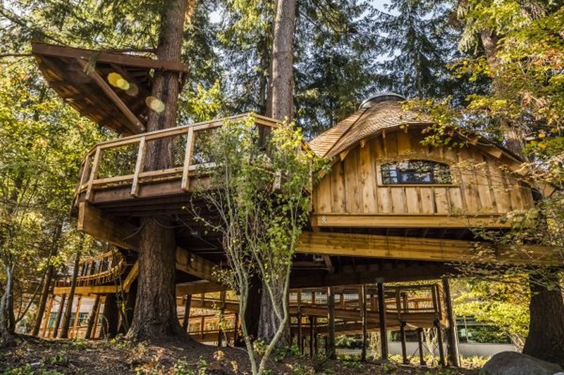 Bangunan ini didesain oleh Pete Nelson seorang pakar rumah pohon serta pembawa acara serial Treehouse Masters di saluran televisi Animal Planet. Diklaim bangunan ini dapat bertahan sampai 20 tahun. (Foto: Dok. Microsoft)