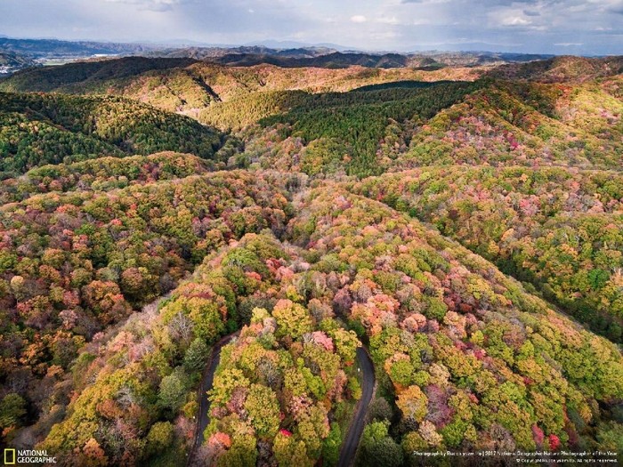 βMulticolored Octopusβ karya fotografer Rucca Y Ito kategori Aerials. Foto alam gunung cantik ini diambil di Hokkaido, Jepang. Foto: National Geographic