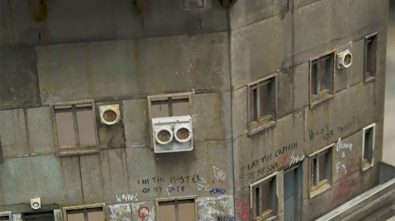 Saat syuting, kamera film dibawa melintasi miniatur-miniatur ini dan memberikan efek pandangan pertama bagi penonton.