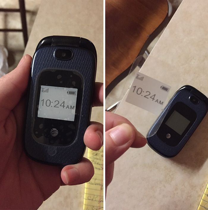 Meminta ponselnya diperbaiki karena tampilan ponsel yang selalu salah.Β Ternyata itu hanyalah sebuah stiker yang belum dicabut. (Foto: Boredpanda)