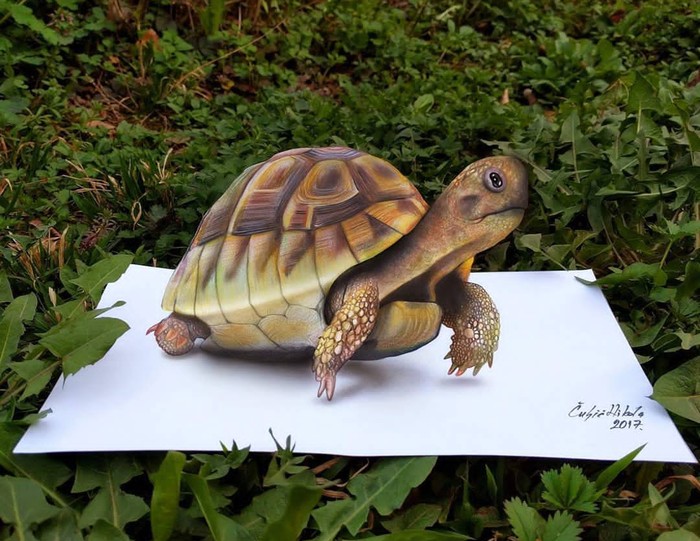 Pengikutnya pun banyak yang memuji hasil karya lukis 3D-nya yang tampak nyata.Β (Foto: Nikola Culjic)