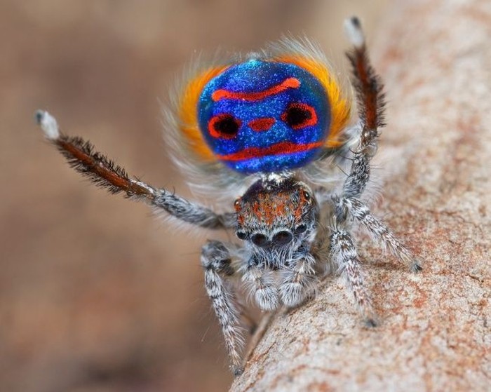 Bonus! Yang satu ini bukan serangga tapi mengagumkan juga, jumping spider. Dia juga sering disebut peacock spider karena warna tubuhnya seperti merak. Laba-laba ini hidup di Australia. Foto: WikipediaΒ via Brightside.me