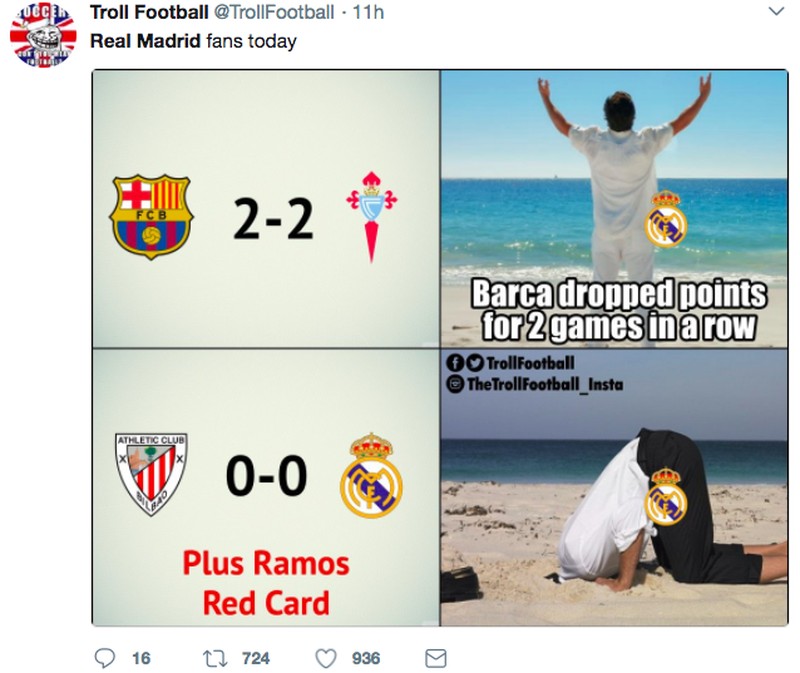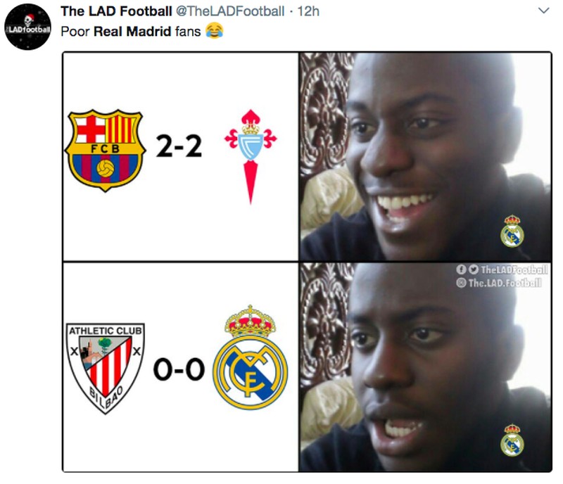 Fans Madrid sempat senang ketika Barceloan ditahan imbang 2-2 oleh Celta Vigo. Namun Madrid malah ikutan meraih hasil imbang. Foto: istimewa