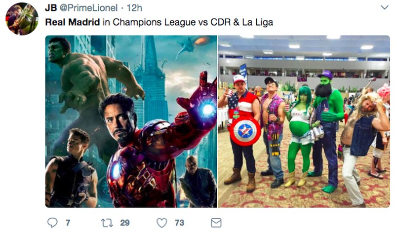 Real Madrid di Piala Champion digambarkan garang seperti superhero Avengers, tapi memble di liga Spanyol dan Copa Del Rey. Foto: istimewa
