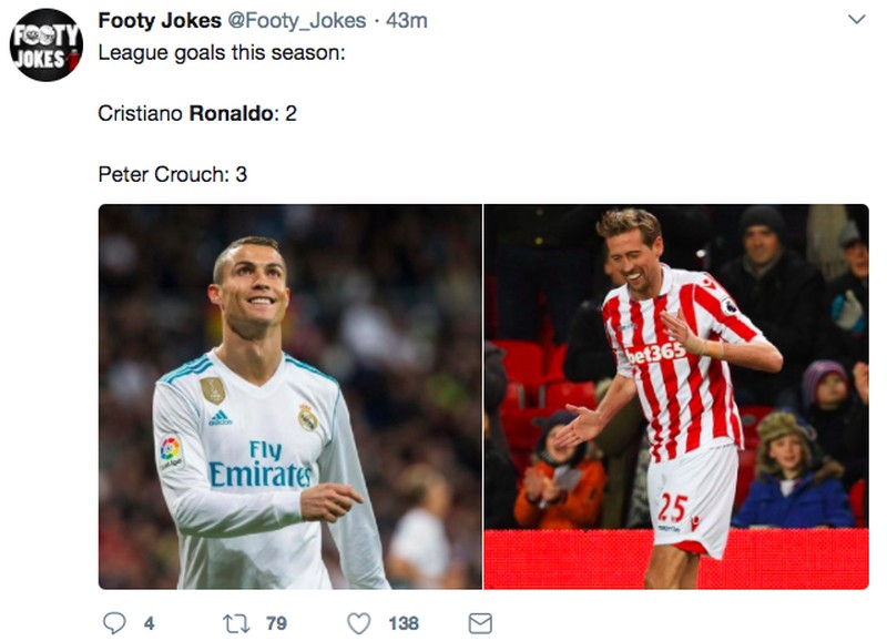 Untuk menggambarkan jeleknya performa Ronaldo, disebutkan raihan gol Peter Crouch lebih tinggi darinya. Foto: istimewa
