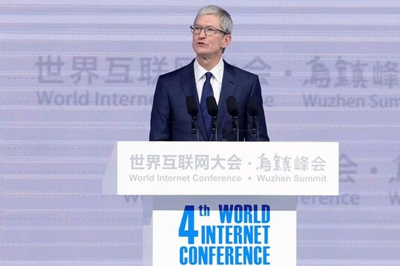 Menurut Cook, tema konferensi ini -- pengembangan ekonomi digital untuk keterbukaan -- sejalan dengan pandangan Apple. Meski ironisnya, menurut Cook, Apple dipaksa untuk menghapus aplikasi VPN dari dalam App Store-nya. Foto: Reuters