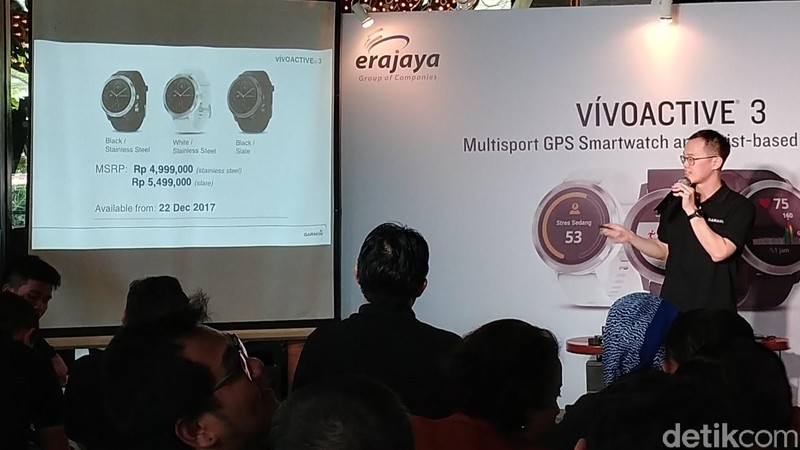 Garmin Indonesia meluncurkan Vivoactive 3, jam tangan pintar untuk olahraga dengan berbagai fitur unggulan. Foto: detikINET/Anggoro Suryo Jati