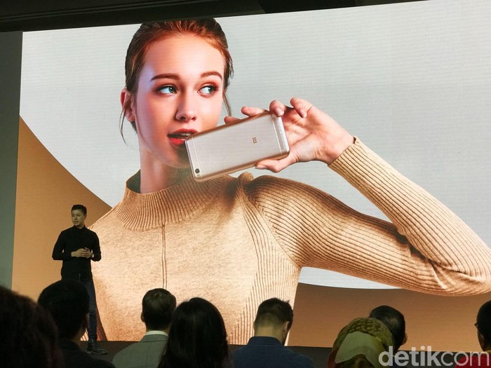 Ponsel ini hadir dengan bentang layar 5 inch dengan resolusi 720p. Desain bagian belakang dibuat khusus untuk kemudahan penggunaan. Foto: Adi Fida Rahman/detikINET