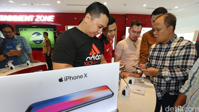 iPhone 8, iPhone 8 Plus dan iPhone X resmi dijual di Indonesia. Ini ditandai dengan penjualan perdana ketiga ponsel tersebut di Galeri Smartfren. (Foto: Ari Saputra)