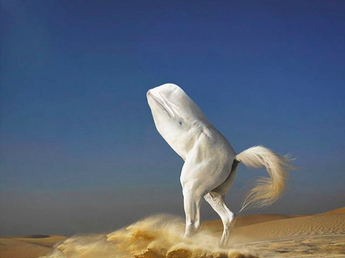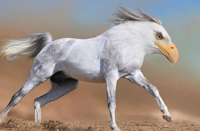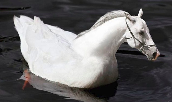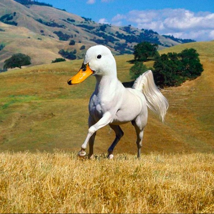 Di setiap hasil photoshop-nya, @gyyporama memberi nama karya kawin silangnya ini. Kalau ini ia beri nama Huck, perkawinan horse (kuda) dan duck (bebek). (Foto: Instagram @gyyporama)