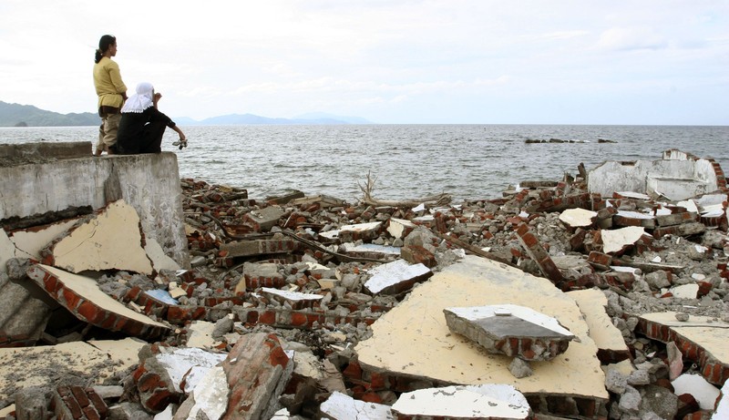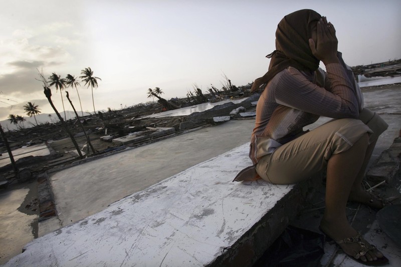 Korban selamat memandangi pantai Ulhe Lheue pasca terjadinya tsunami Aceh. (Foto: Dimas Ardian/Getty Images)