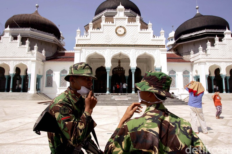 TNI berjaga di sekitar Mesjid. Foto diambil pada 7 Januari 2005. (Foto: Spencer Platt/Getty Images)