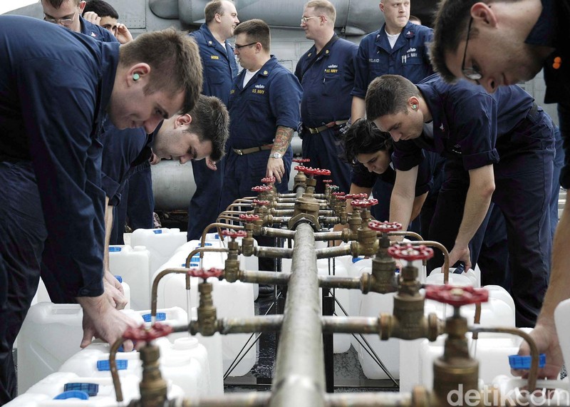 Berbagai bantuan berdatangan dari berbagai negara. Mulai dari makanan, obat-obatan, sandang, hingga air bersih. (Foto: Jordon R. Beesley/U.S. Navy via Getty Images)