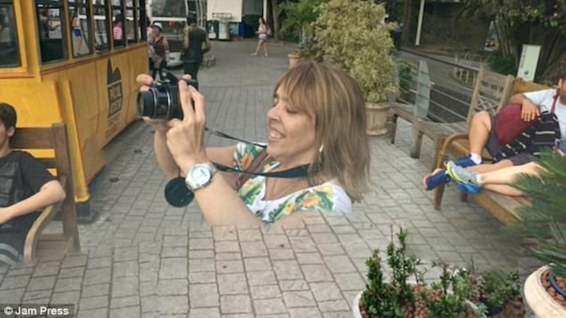 Wisatawan ini sedang berpose di salah satu tempat wisata, tapi kakinya hilang. (Foto: Dailymail)