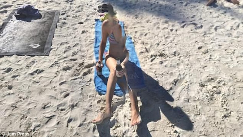 Tengah menikmati minuman bir, setengah tubuh wanita ini 'hilang'. (Foto: Dailymail)