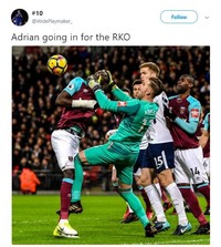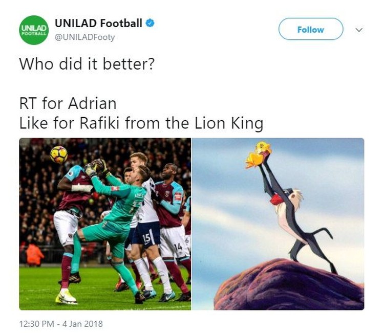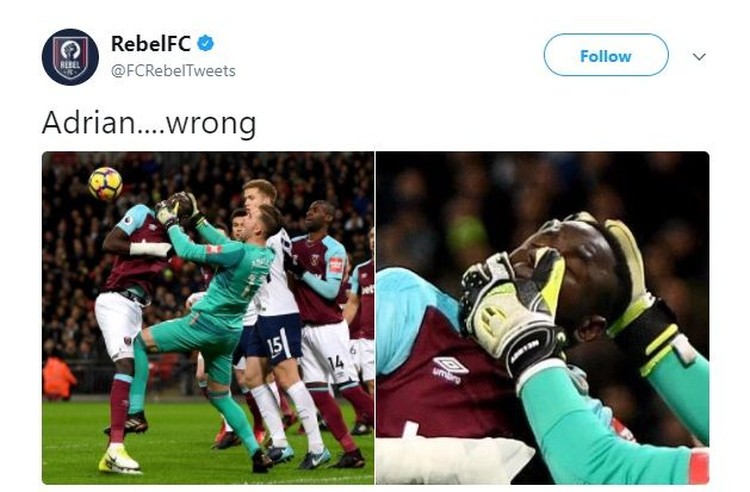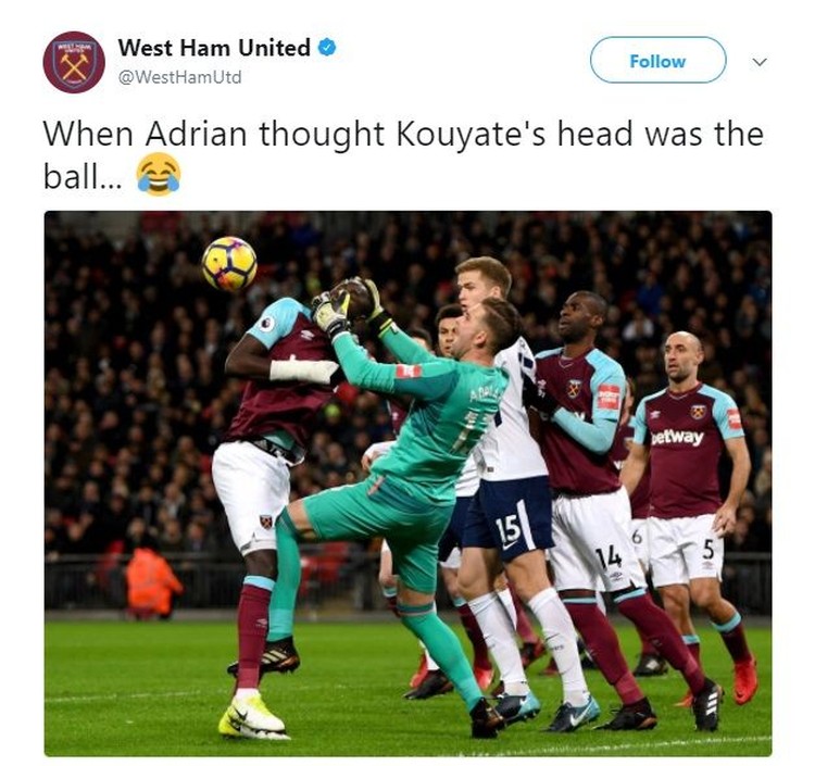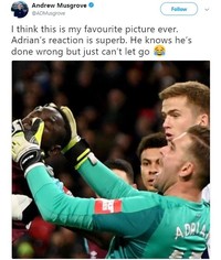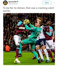 Jakarta - Blunder yang dilakukan oleh Adrian, kiper West Ham United, membuat netizen terpingkal. Bukannya mengamankan bola, ia justru menangkap kepala rekannya.