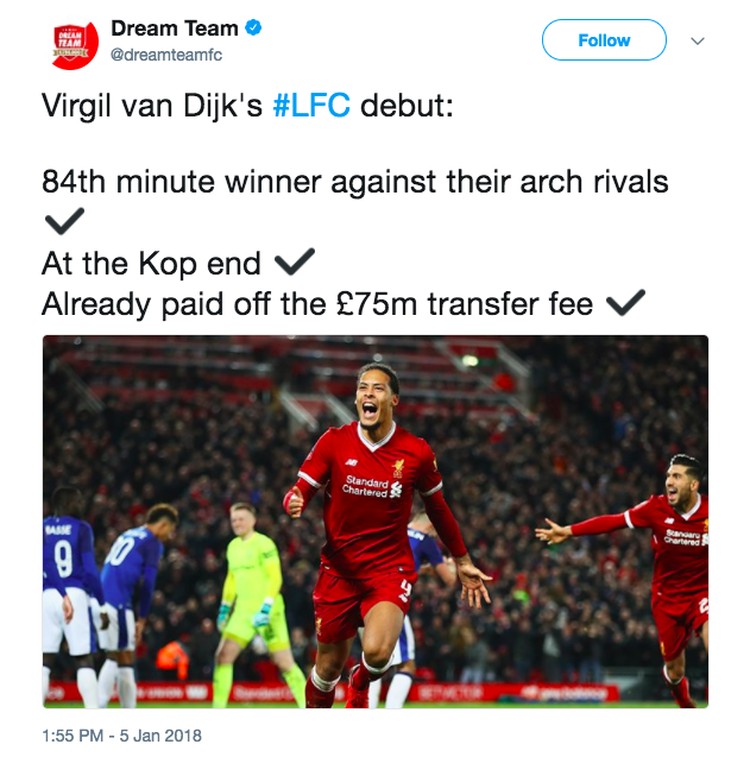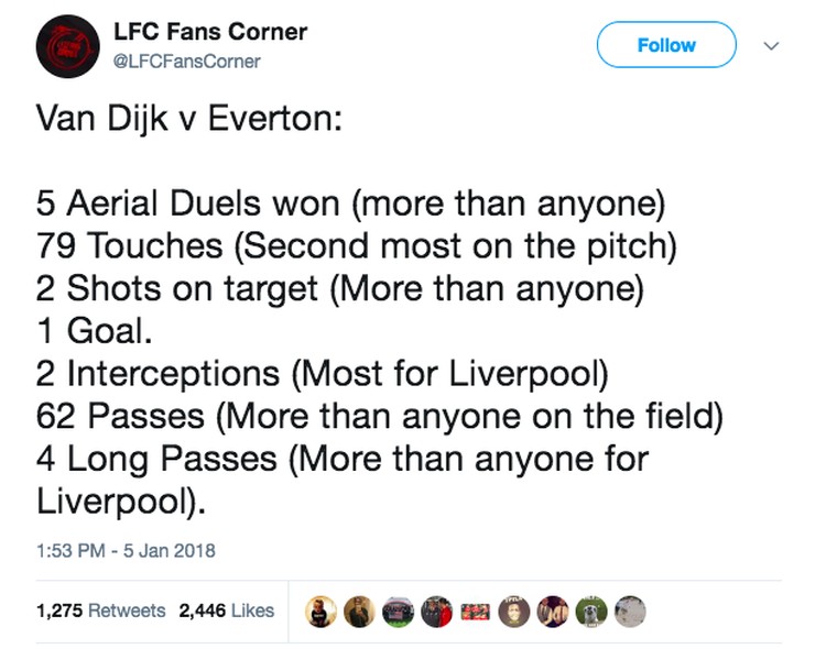 Jakarta - Virgil Van Dijk jadi pahlawan Liverpool dalam kemenangan mereka atas rival sekota, Everton dengan skor 2-1. Pujian setinggi langit pun mengalir di medsos.