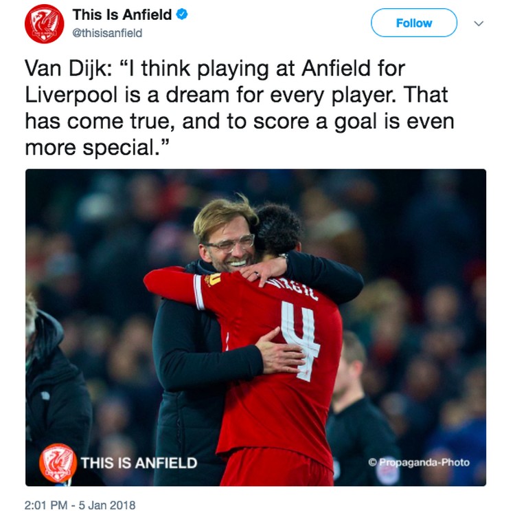 Van Dijk Dipuji Fans Liverpool di Medsos Setinggi Langit