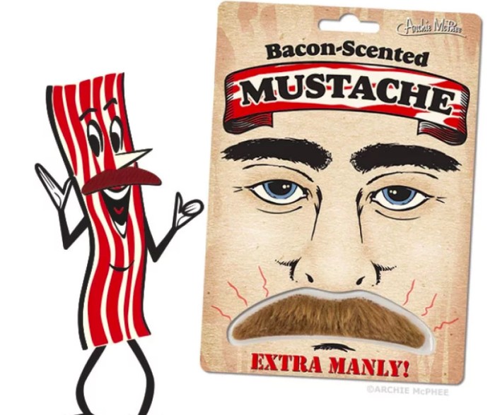 Ini adalah kumis palsu dengan bebauan daging asap agar penggunanya lebih jantan. Foto: istimewa