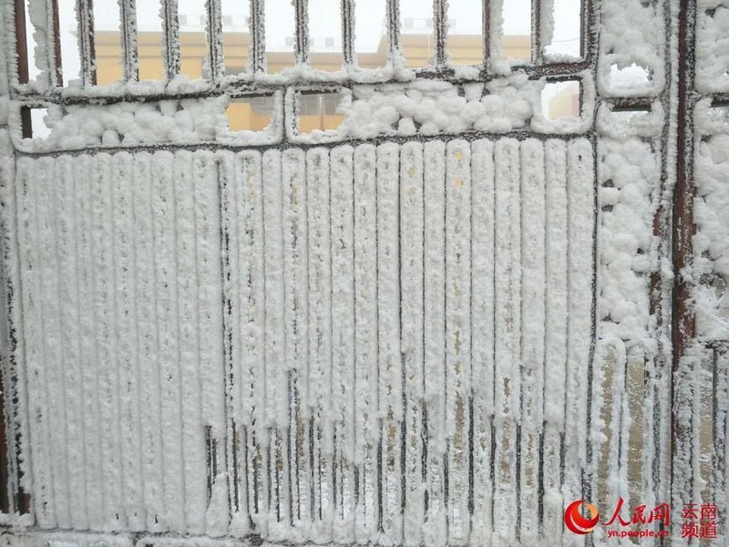 Gerbang sekolah sampai membeku. Foto: People's Daily