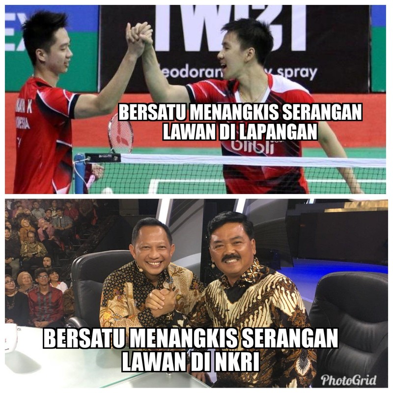 Keakraban Panglima TNI Marsekal Hadi Tjahjanto dan Kapolri Tito Karnavian ramai dijadikan meme oleh para netizen. Foto: Twitter