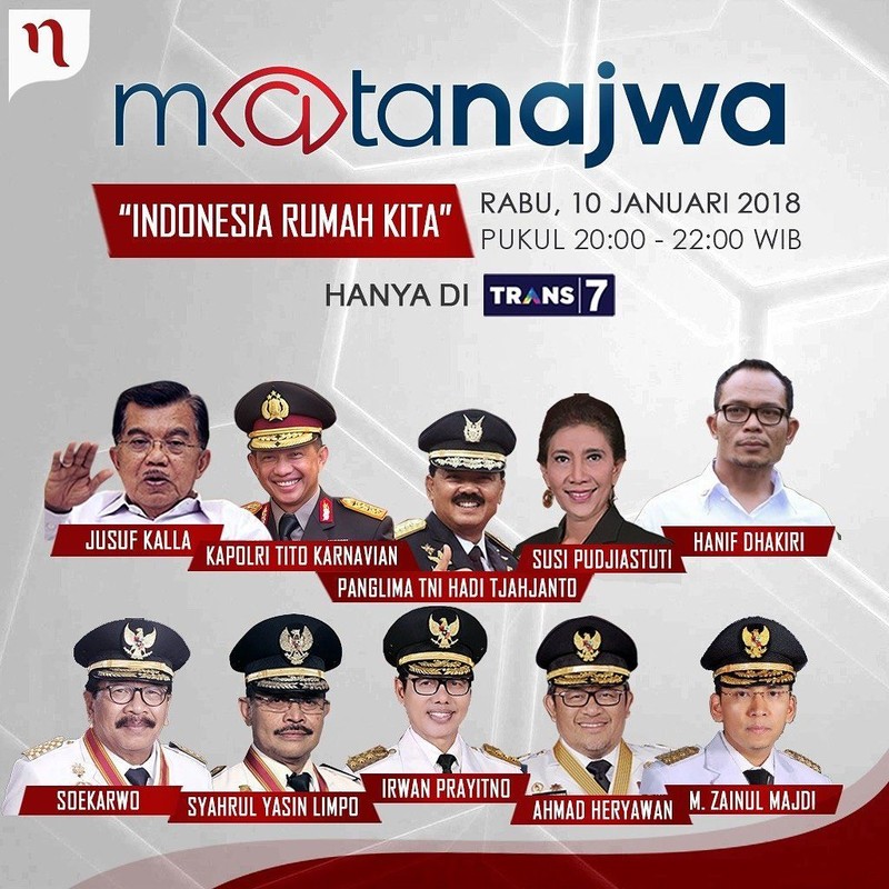 Tokoh-tokoh besar negeri ini ramai-ramai hadir di acara perdana Mata Najwa di Trans7. Foto: Twitter