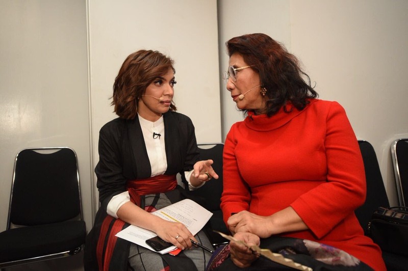 Foto di balik layar ketika Najwa ngobrol seru dengan Menteri Susi Pudjiastuti yang lagi ramai dibicarakan beberapa hari ini. Foto: Twitter