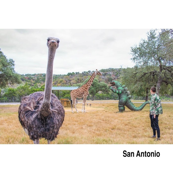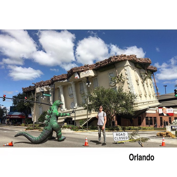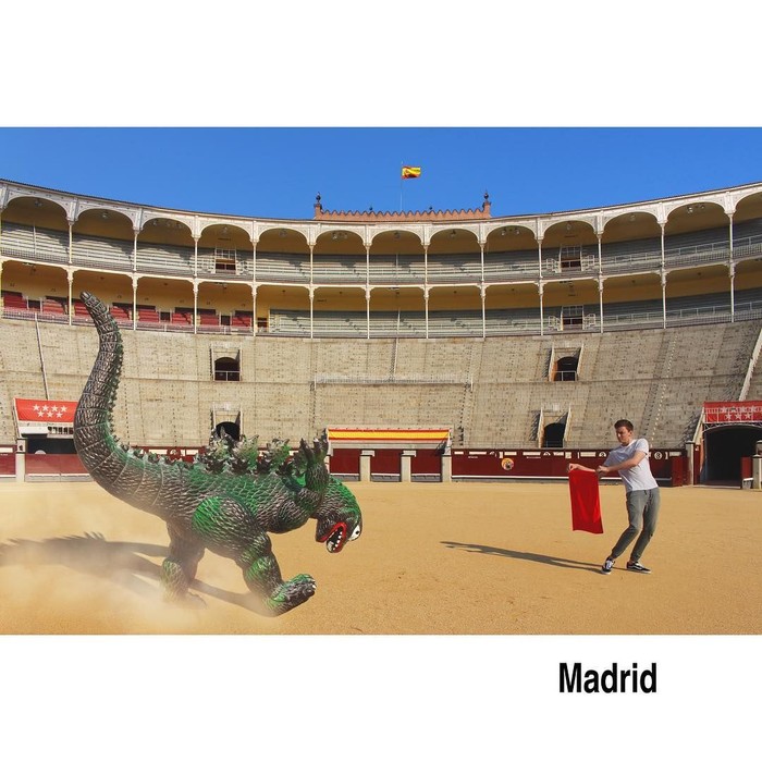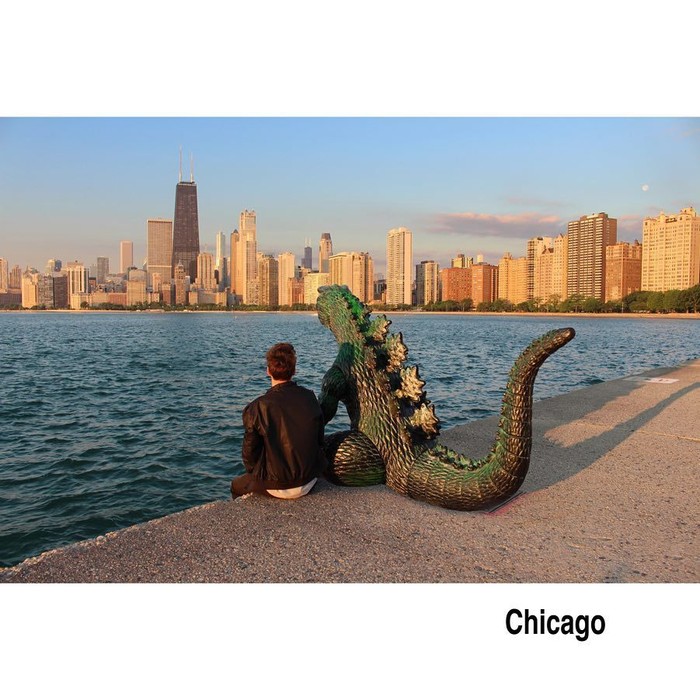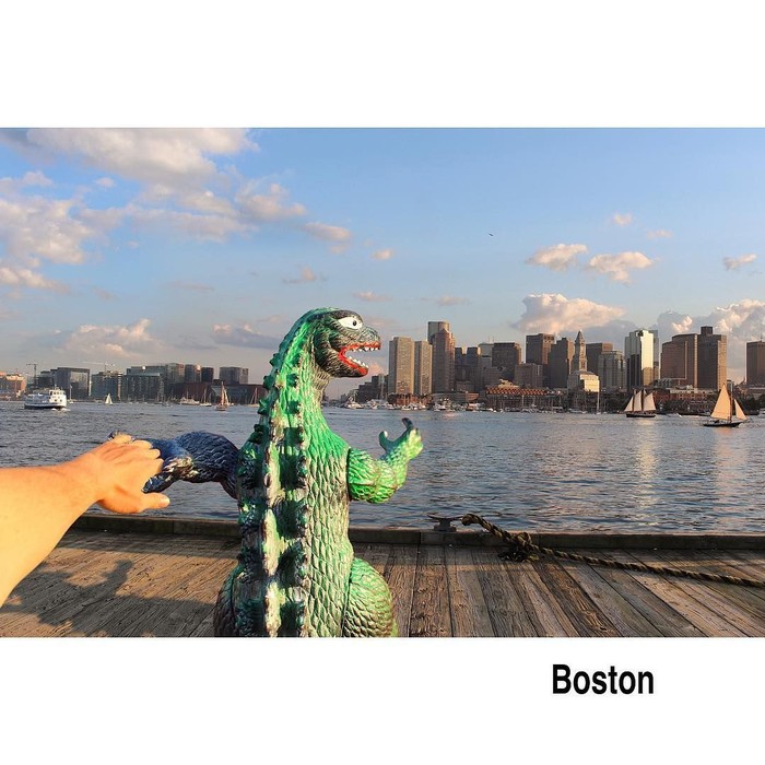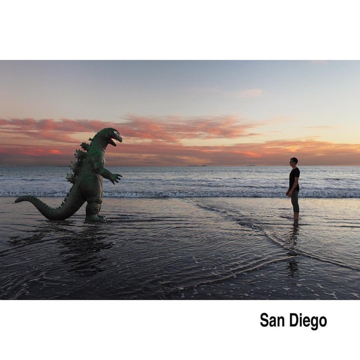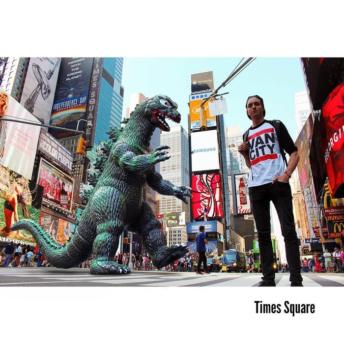 Manusia keliling dunia rasanya sudah biasa, tapi kalau Godzilla akan lain cerita. Berikut foto-foto penampakan Godzilla traveling keliling dunia.