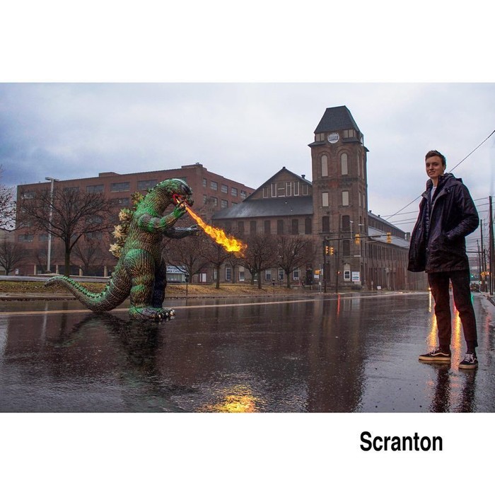 Tentu ini bukan Godzilla betulan. Sang pembuat foto unik ini adalah Kieran Knightley. Foto: Ryangodzilling