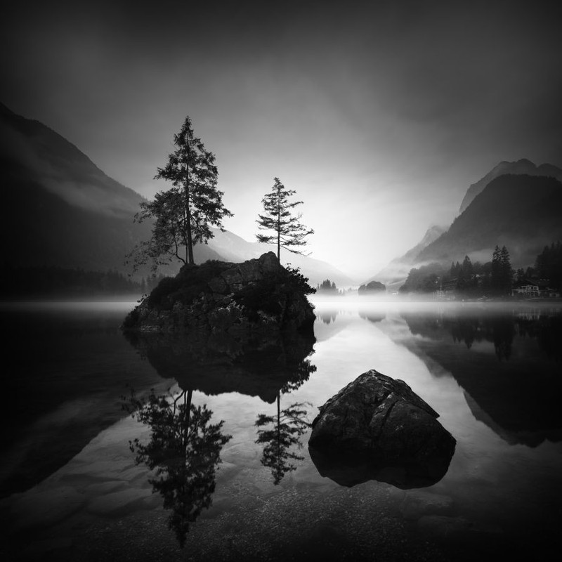 Pemenang kategori Landscape (amatir). 'Lake Hintersee TreeIsland Study II' karya Marcel Zizkat (Jerman). Foto: Monochrome Photography Awards