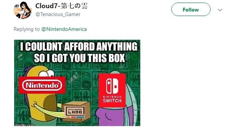 Reaksi begitu mengetahui harga Nintendo Labo. (Foto: Twitter)