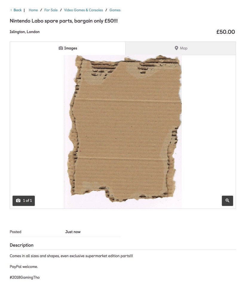 Karena tidak punya uang jadi Nintendo cuma bisa kasih kardus. (Foto: Twitter)